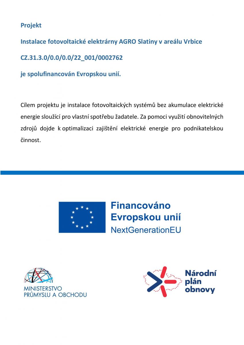 Společnost AGRO Slatiny a.s. zahájila v roce 2016 realizaci dvou projektů s podporou PRV (Programu rozvoje venkova) s těmito názvy a cíli: